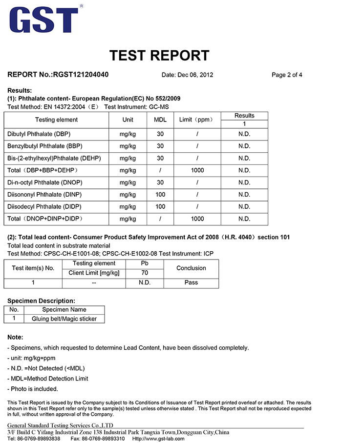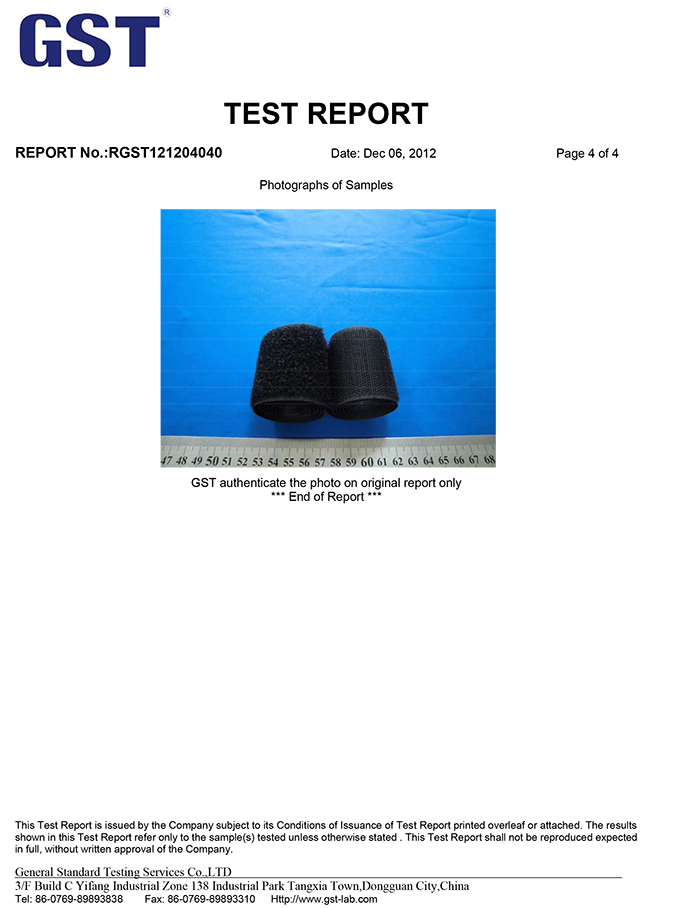 魔术贴粘扣带SGS测试报告